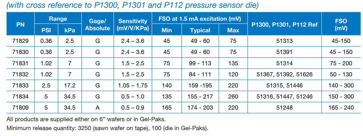 NovaSensor PT2710 集成温度传感器的硅压阻压力传感器芯片
