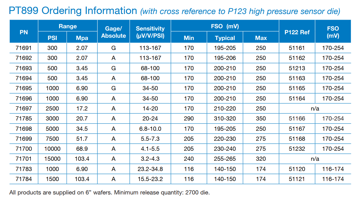 NovaSensor PT899 集成温度传感器的硅压阻压力传感器